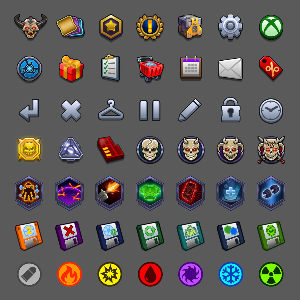 The following showcases UI work I personally created and delivered, including all iconography and UI textures across menus, progression, and gameplay systems. I built these assets hands-on while also establishing the overall visual direction in collaboration with the Art Director. In addition, I defined and executed the look and rendering approach for 3D item icons and 3D key art used in screens, and set up systems for live ops so 3D artists knew exactly what to render out for ongoing events and content updates. I implemented best practices for optimizing UI textures directly in Unity, ensuring assets were as lightweight as possible while maintaining visual fidelity. All work went through review with id Software to maintain authenticity and consistency, resulting in a cohesive and polished UI style that reinforced the game’s fast-paced, visceral feel.